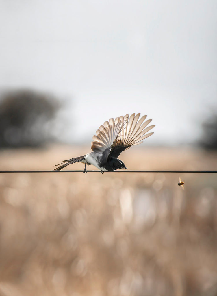 A Willie Wagtail about to feast on a fly in the Seaford Wetlands.